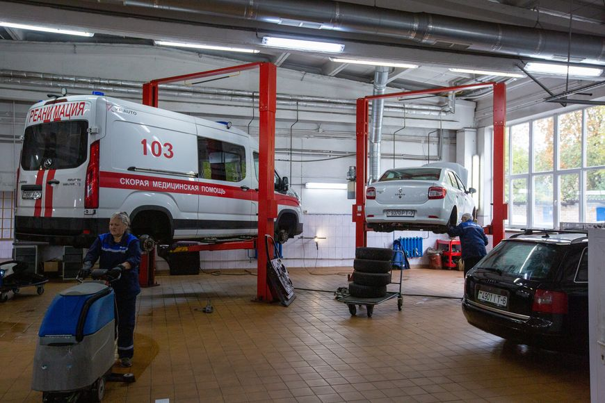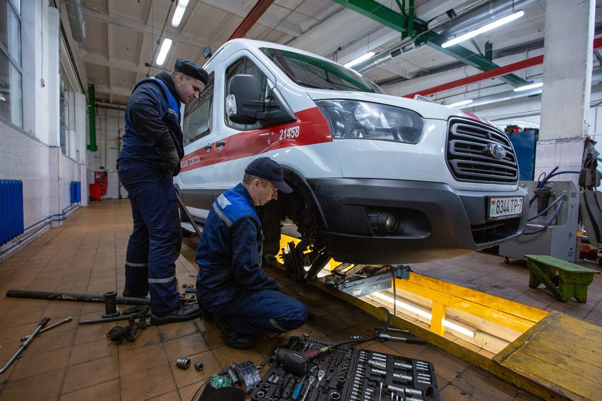 В авторемонтной мастерской трудится порядка 100 сотрудников. Опытный ремонтник Юрий Суботка отмечает, что при обслуживании транспорта оперативного назначения особенно следят за состоянием тормозов, подвески, а также рулевого управления.