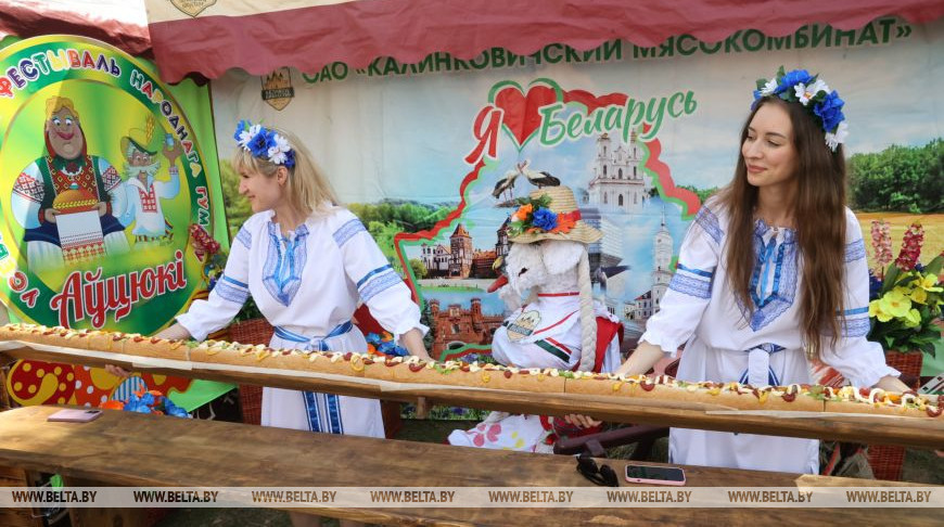 Специально для гостей феста на Калинковичском мясокомбинате приготовили мегафастфуд. Длина хот-дога - три метра.