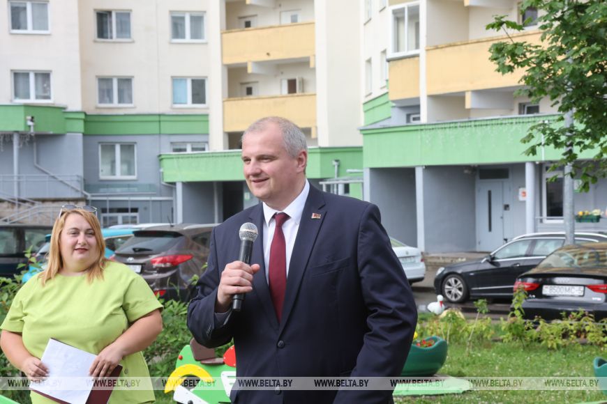16 июля, Минск /Корр. БЕЛТА/. В Минске реализовано более половины гражданских инициатив. Об этом журналистам рассказал председатель Минского городского Совета депутатов Артем Цуран. Такой информацией он поделился во время открытия детской площадки в Минске по адресу: ул.Неманская, 45. Ее появление - результат участия жителей дома в ежегодном конкурсе гражданских инициатив, передает корреспондент БЕЛТА.