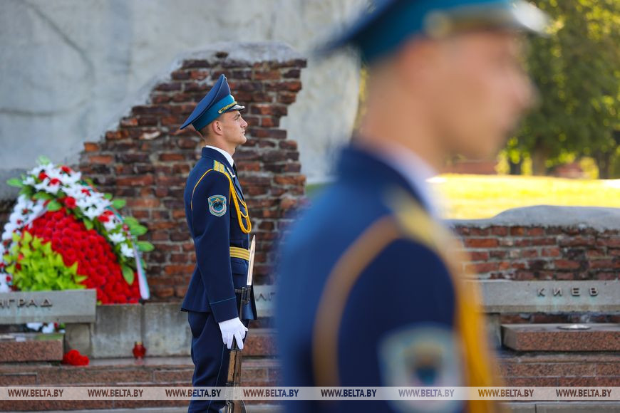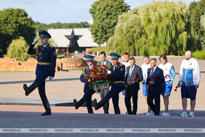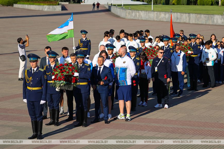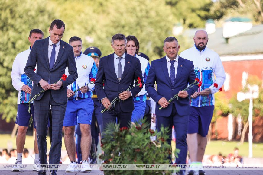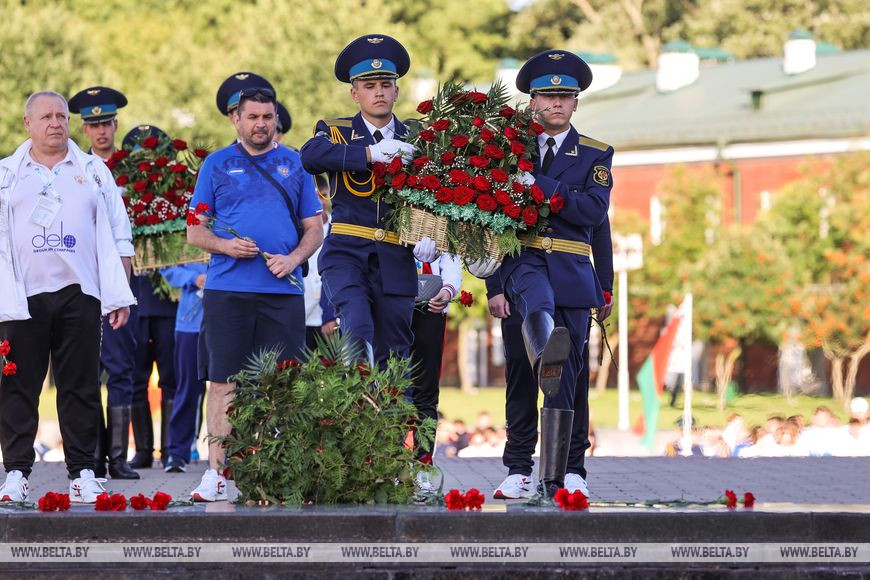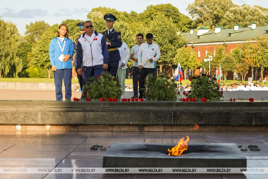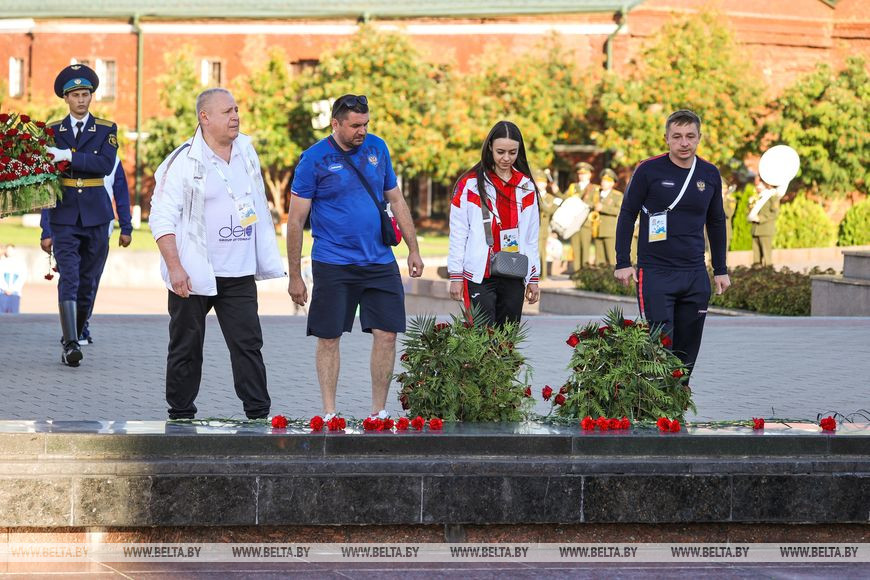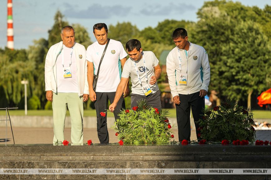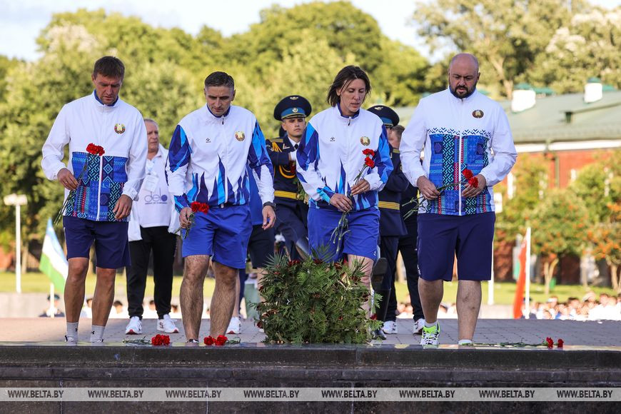 Вечером 8 августа на площади Церемониалов собрались делегации четырех стран - участниц турнира - Беларуси, России, Узбекистана и Кыргызстана. Представители юношеских и девичьих сборных возложили цветы к Вечному огню. Гандболисты и тренерский штаб почтили память защитников Отечества минутой молчания.