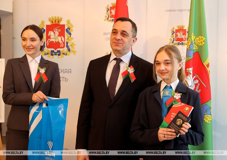 15 марта, Витебск /Алеся Пушнякова - БЕЛТА/. В День Конституции 20 школьникам из Витебской области председатель облисполкома Александр Субботин вручил их первые паспорта граждан Беларуси, передает корреспондент БЕЛТА.