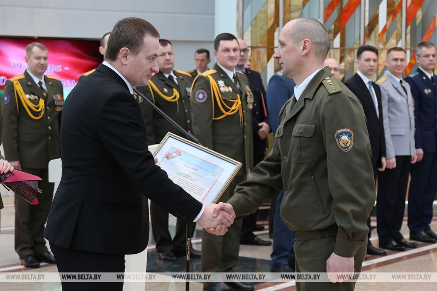 На торжественном мероприятии 30 лучшим сотрудникам МЧС и гражданам, которые приняли участие в спасении людей на пожарах, вручили грамоты и благодарности Миноблисполкома и смежных структур. "Профессия сотрудника МЧС - одна из самых сложных, но при этом благородных. Эти люди принимают участие в спасении взрослых и детей на пожарах и в дорожно-транспортных происшествиях, ищут пропавших в лесах, участвуют и в других опасных для жизни чрезвычайных ситуациях. Благодаря вам сохранены многие жизни и объекты, в том числе сельскохозяйственного комплекса. Мы благодарны вам за это, и могу заверить, что и дальше продолжим строить вам жилье, приобретать современную технику для комфортной и эффективной работы", - сказал глава Минской области Александр Турчин.