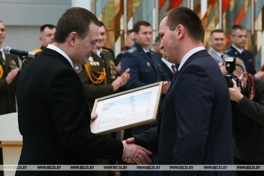 Во время торжественного мероприятия также наградили жителя Любанского района Дмитрия Хомича, который спас односельчанина во время пожара.-0-