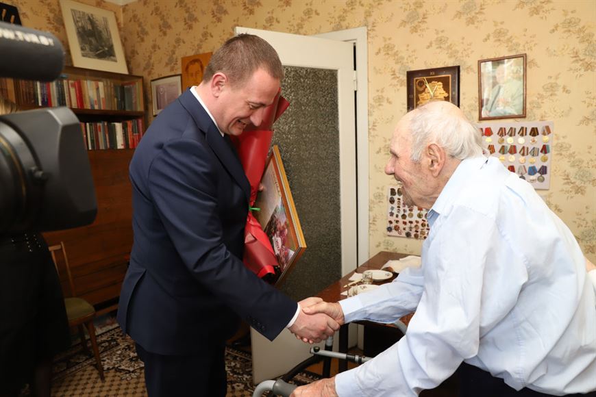 Сегодня председатель Миноблисполкома поздравил с наступающим Днем Победы почетного гражданина Минской области, ветерана Великой Отечественной войны 101-летнего Александра Слободу.