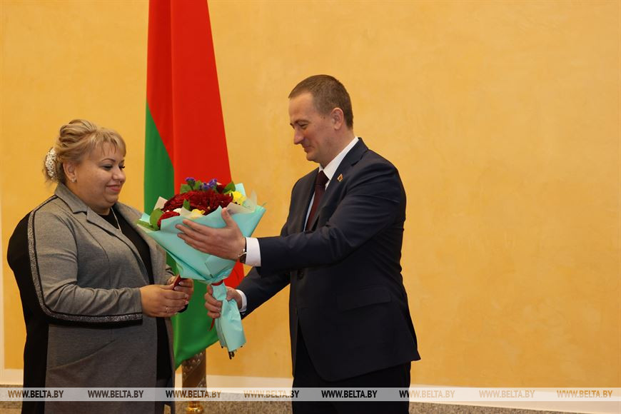 12 октября, Минск /Корр. БЕЛТА/. В преддверии Дня Матери председатель Миноблисполкома Александр Турчин наградил орденом Матери мам, воспитывающих пять и более детей. Высокой государственной награды удостоены 24 жительницы Минской области, передает корреспондент БЕЛТА.