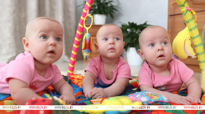 Семье помогает няня, предоставленная территориальным центром социального обслуживания населения. Пять дней в неделю она приходит к 10.00 и проводит время с малышками до 19.00. "Я попросила такой график, потому что он для меня удобный. Конечно, мне разгрузили руки. Я могу что-то еще сделать по дому. Няня поиграет с девочками, покормит, переоденет, на прогулку сходит с ними. Это очень большая помощь от государства. Не каждая семья может позволить себе няню. Особенно такая поддержка ощутима, когда рядом нет родственников", - подчеркнула женщина.Последние пять месяцев утро в семье начинается отнюдь не под трели будильника: плачут тройняшки, оповещая родных, что проголодались. "Мы встаем обычно все в шесть утра. Девочки кушают и засыпают. Стабильно спят до половины девятого. Потом опять едят. Далее у нас идут умывание, переодевание, игры, массаж, немножко занимаемся с ними. Где-то в 11.30 дети опять уходят на сон. Но по-разному бывает", - пояснила мама. И так на протяжении всего дня. Ее дочери на искусственном вскармливании. Облегчает Ирине жизнь машинка для приготовления смеси.