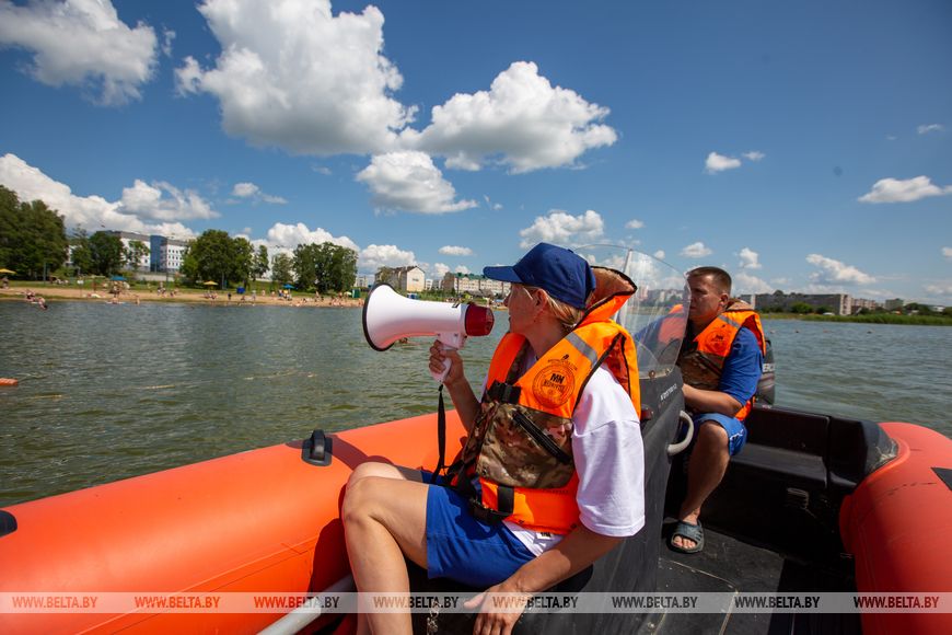 На часах полдень. На пляже Смолевичского водохранилища яблоку негде упасть. Сквозь плескание воды, задорный детский смех и гул разговоров взрослых слышится электронный голос из рупора: "Здесь купаться запрещено!" Замечание звучит с пирса, где на спасательной станции ведут наблюдение за акваторией сотрудники ОСВОД. Еще через пару минут предупреждение вновь разносится над водной гладью, а затем вдогонку за эхом громкоговорителя в сторону нарушителя мчится спасательный катер с двумя матросами на борту.