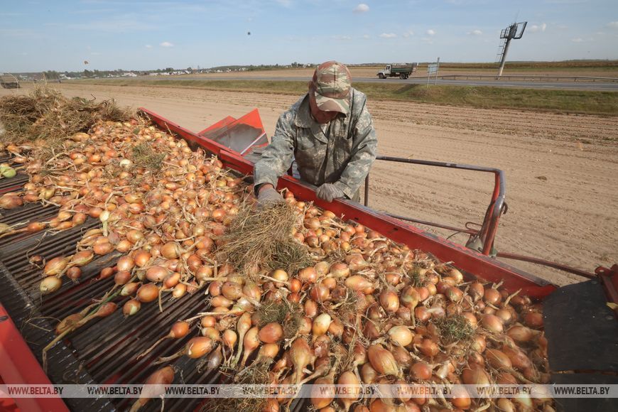 16 сентября, Могилев /Корр. БЕЛТА/. В ОАО "Фирма "Кадино" Могилевского района приступили к уборке лука. Данную культуру в хозяйстве выращивают уже более 10 лет. В этом году урожайность составляет около 300 центнеров с гектара, это на 30% выше прошлого года.-0-
