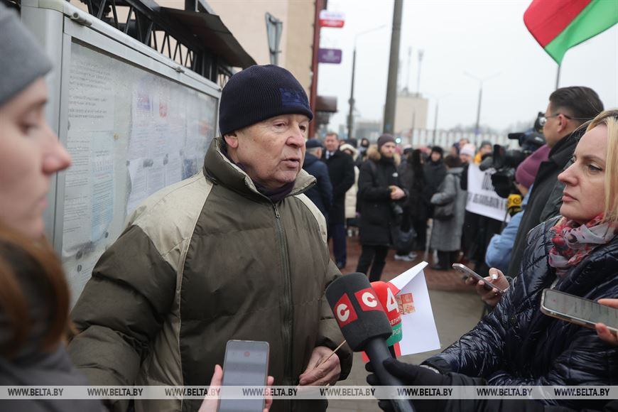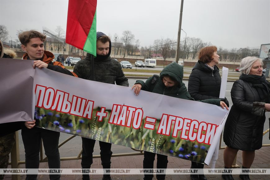 24 февраля, Гродно /Корр. БЕЛТА/. Пикет против политики официальной Варшавы прошел у генконсульства Польши в Гродно, передает корреспондент БЕЛТА.