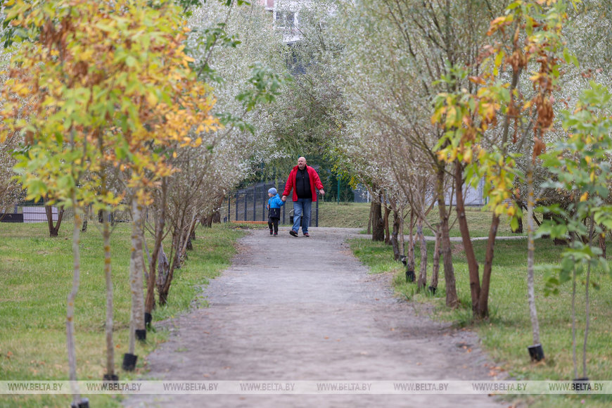 "Во дворе построили инклюзивную детскую площадку, потому что мы понимаем, что все детки равны, и хотели, чтобы все чувствовали себя здесь одинаково, чтобы дети с особенностями их не ощущали. Если с самого детства воспитывать правильное отношение к таким детям в обществе, то и в школе, и во взрослой жизни они не будут иметь преград в общении", - уверена председатель товарищества. Зона отдыха "Малиновка 5,6" в Московском районе в границах улиц Есенина и Рафиева радует и детей, и взрослых. Ребята катаются на качелях и проводят время на детской площадке, а их родители гуляют по парку. Здесь также можно встретить много собачников. И если кто-то выходит погулять с мелким пуделем, то у кого-то - большие собаки, которым нужно много пространства для прогулки. В этой же зоне отдыха можно увидеть аллею из 28 скамеек, созданных разными организациями и отражающими их индивидуальность. Белорусский орнамент, мельница, зубры, аисты, васильки и другие цветы - за каждым рисунком своя история.