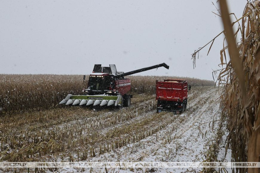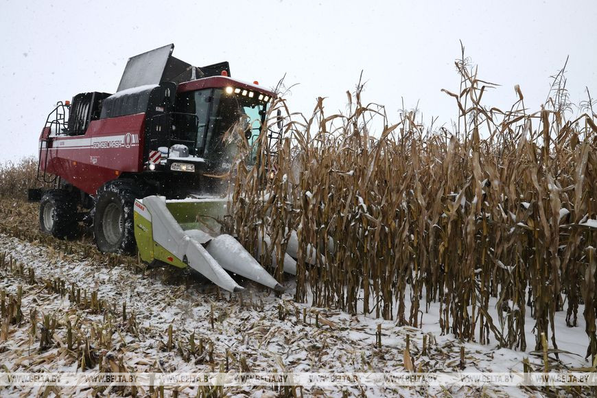 Первый заместитель председателя облисполкома пояснил и по срокам уборки. Так, осенью в сырую погоду влажность кукурузы составляла более 50%, в то время как сейчас, при первых заморозках, чуть больше 30%. Это существенно снижает издержки на доработку зерна на зерносушильных комплексах. Поэтому аграрии ждали подходящей погоды, чтобы заморозки остановили вегетацию культуры и тем самым упала ее влажность. "При такой влажности, как сейчас - чуть больше 30%, - почти в два раза уменьшается количество расхода газа на сушку зерна, - подчеркнул Анатолий Уласевич. - В свою очередь погодные условия, в том числе снег, не доставляют механизаторам сильных неудобств. Единственное, чуть чаще нужно чистить комбайн и молотильную систему. Но когда нет осадков, работа идет в привычном режиме. Каждый день в хозяйстве убирают по 100-170 га и примерно 1,5 тыс. т поступает на зерноток. Работает четыре единицы техники. На окончательную уборку полей понадобится около 10 дней".-0-