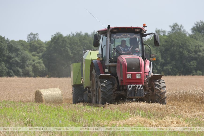 "Погода сегодня способствует жатве. И хотя местами на полях еще вязко, там, где возможно, все комбайны, имеющиеся у сельхозпредприятий района, вышли на уборку даже раньше обычного, потому что и росы с утра не было. Все заряжены, механизаторы есть. Сразу прессуем солому, которая пойдет затем на подстилку для КРС на животноводческих комплексах. По району осталось убрать около 20% озимого ячменя. Также идет уборка озимых рапса и пшеницы, ярового ячменя", - рассказал Петр Коренкович.