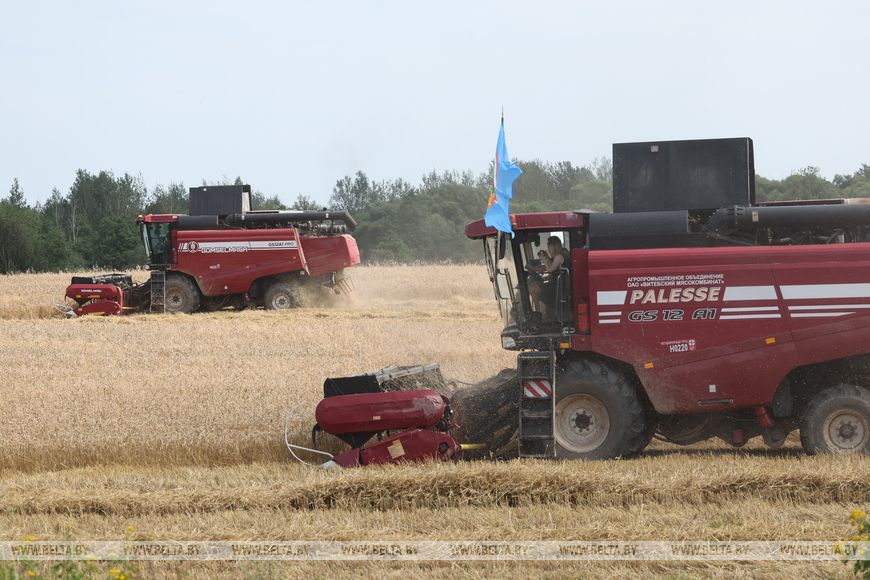 30 июня, Витебский район /Алеся Пушнякова - БЕЛТА/. В Витебском районе сельхозпредприятия приступили к массовой уборке зерновых, сообщил корреспонденту БЕЛТА первый заместитель председателя - начальник управления по сельскому хозяйству и продовольствию Витебского райисполкома Петр Коренкович.