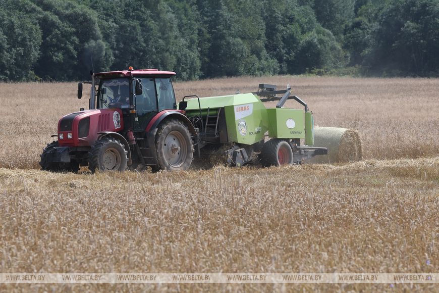 "Погода сегодня способствует жатве. И хотя местами на полях еще вязко, там, где возможно, все комбайны, имеющиеся у сельхозпредприятий района, вышли на уборку даже раньше обычного, потому что и росы с утра не было. Все заряжены, механизаторы есть. Сразу прессуем солому, которая пойдет затем на подстилку для КРС на животноводческих комплексах. По району осталось убрать около 20% озимого ячменя. Также идет уборка озимых рапса и пшеницы, ярового ячменя", - рассказал Петр Коренкович.