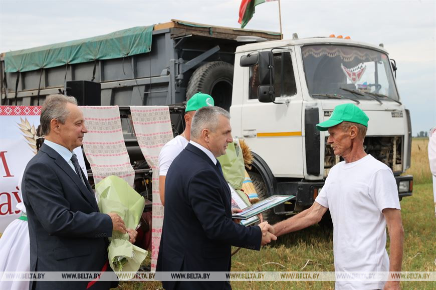 11 августа в ОАО "Калининский" Добрушского района чествовали экипаж комбайнеров, намолотивших свыше 2 тыс. т зерна, и водителей, которые перевезли более двух тысяч тонн золота полей каждый. Председатель Гомельского облисполкома Иван Крупко подчеркнул важность соблюдения агрономических сроков и технологии возделывания.-0-