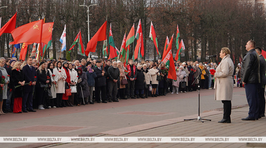 На площади Ленина сегодня собрались представители Могилевского облисполкома и горисполкома, общественных объединений и политических партий, депутаты, трудовые коллективы, ветераны и молодежь.