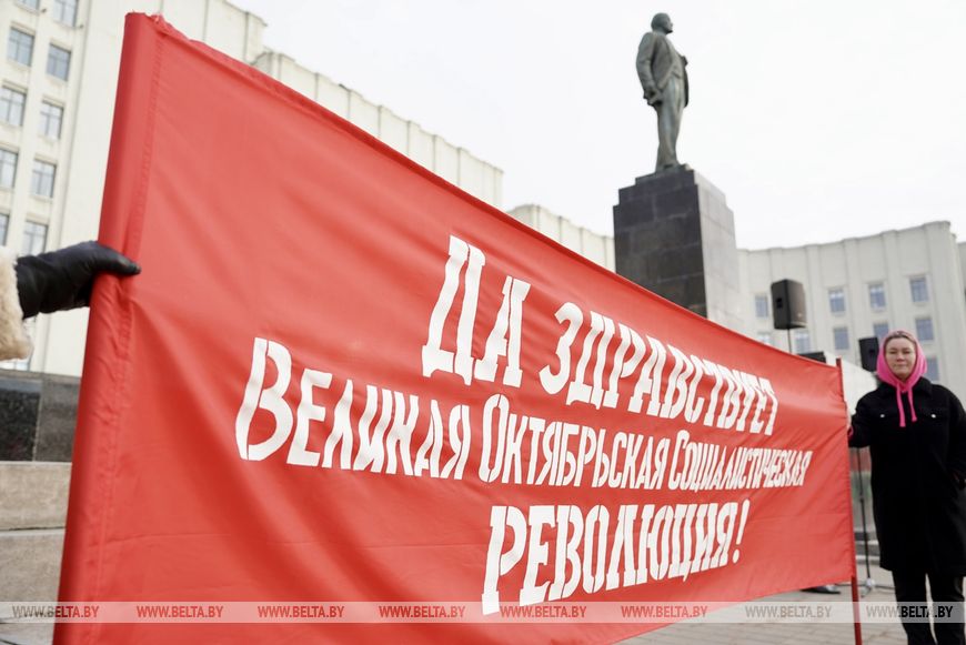 Среди тех, кто пришел на митинг - могилевчанка Наталья Осипова. Женщина посчитала важным присоединиться к мероприятию. "Историю должен знать и помнить каждый, передавать из поколения в поколение. Нужно приходить, нужно общаться, рассказывать о событиях Октябрьской революции младшим поколениям. Это часть истории, во многом определившей путь нашей страны на годы вперед", - поделилась она.