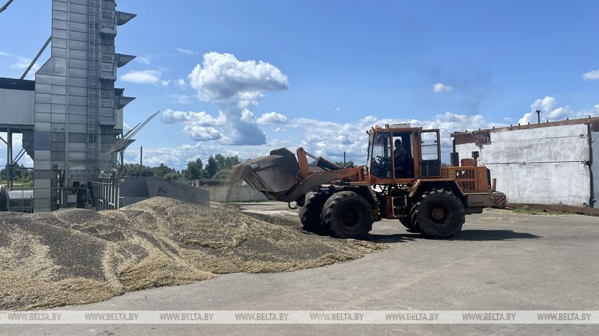 Важно не только грамотно провести уборку урожая, но еще и обеспечить его сохранность до последнего зернышка. Прямо с поля маслосемена рапса отвозят на сушилку. Здесь знакомимся с заместителем директора сельхозпредприятия Евгением Хохловым. "Это зерносушильный комплекс нашего отделения "Макаренцы". Суточная проходимость при сегодняшней урожайности рапса - 90 т, - рассказывает он. - Здесь мы проводим первичную очистку маслосемян, готовим для отправки государству и на склады".
