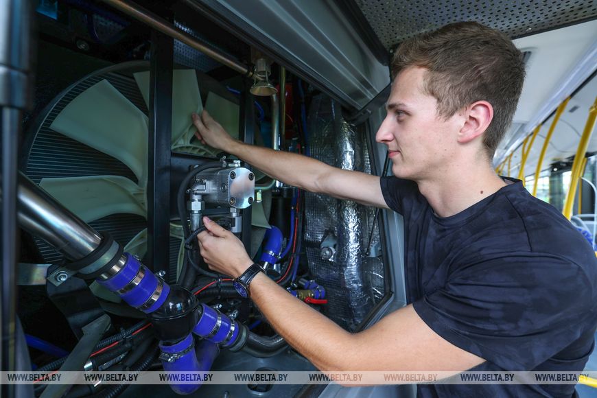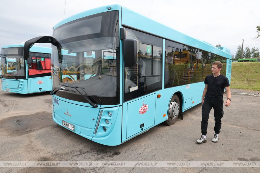 За победу в конкурсе молодого специалиста руководство ОАО "Витебскоблавтотранс" решило поощрить новым рабочим транспортом. Петру вручили ключи, и скоро он отправится на линию на комфортном МАЗе бирюзового цвета. "Он мало чем внешне отличается от подобных машин, которые появились в автопарке в 2023 году, но эта модель намного комфортнее - в салоне есть кондиционер для пассажиров, да и ход у него мягче", - описывает свои ощущения после тестового заезда молодой человек.Пока автобус проходит техобслуживание, но скоро со своим новым водителем будет колесить по городу.-0-