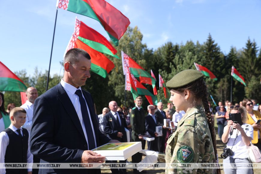 7 сентября, Дзержинск /Корр. БЕЛТА/. На самой высокой точке Беларуси - горе Дзержинская в Минской области сегодня был дан старт республиканскому проекту "Символ единства - 2023", организованному общественным объединением "Патриоты Беларуси" и приуроченному ко Дню народного единства, который будет отмечаться в стране 17 сентября, передает корреспондент БЕЛТА.
