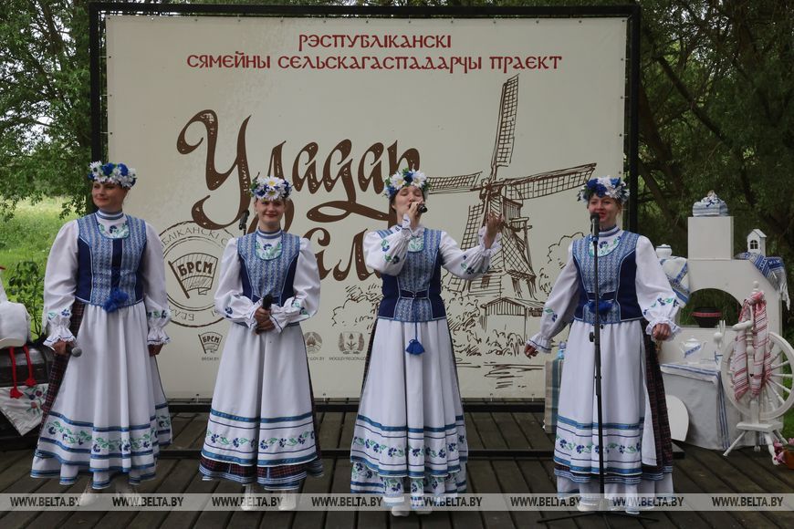 Региональный этап республиканского сельскохозяйственного проекта "Властелин села" собрал сегодня в агрогородке Полыковичи 14 семей из Могилевской области. В течение дня они проходили целый ряд конкурсных испытаний, среди которых конкурс на лучшее подворье, визитную карточку, каравай, сельскую эстафету и драники на колоде. Женщины соревновались в плетении венков, а их мужчины - в конкурсе косцов.