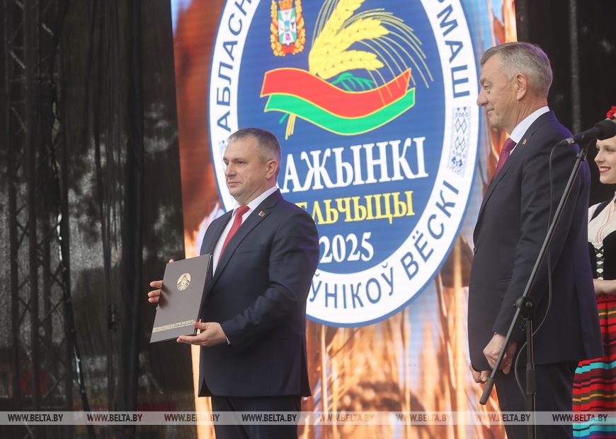 3 октября, Лельчицы /Корр. БЕЛТА/. В Гомельской области на жатве-2025 средняя урожайность по зерновым и зернобобовым составила более 30 ц/га, что почти на 10 ц выше уровня прошлого года. Об этом сообщил председатель облисполкома Иван Крупко на региональном фестивале-ярмарке "Дажынкі-2025", столицей которого стали