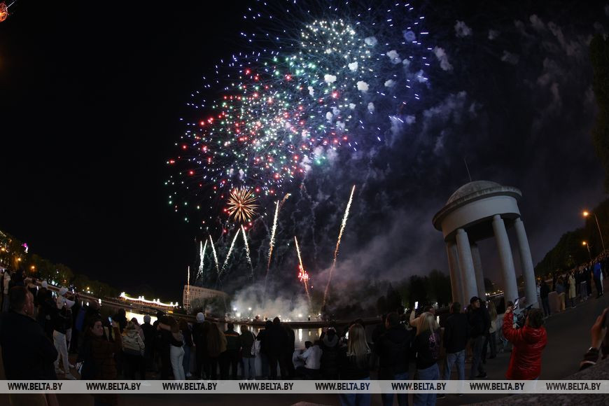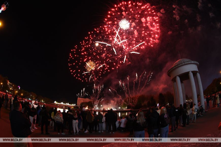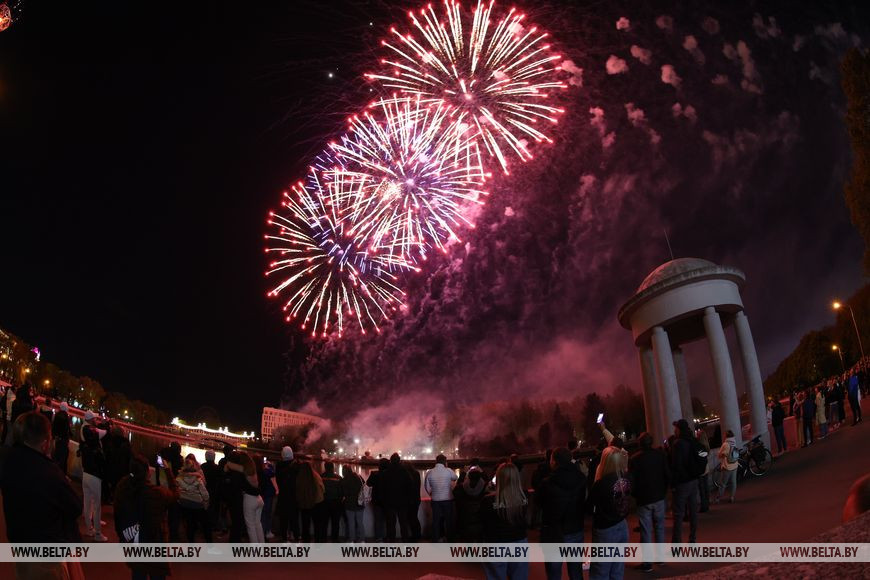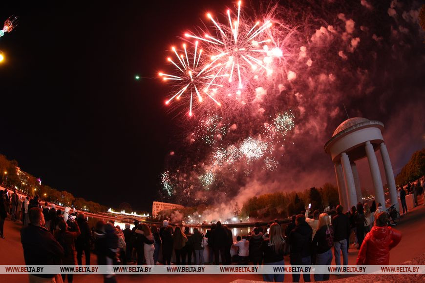 В 23.00 праздничные залпы были даны в шести точках Минска. В частности, наблюдать за салютом можно было в парках Янки Купалы, имени Павлова и Уго Чавеса, на набережной в микрорайоне Дрозды, возле Национальной библиотеки и в районе "Чижовка-Арены".-0-