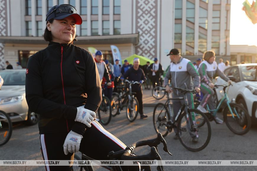 К велопробегу также присоединилась председатель Белорусской федерации велосипедного спорта, государственный тренер по велоспорту заслуженный мастер спорта Беларуси Наталья Цилинская.