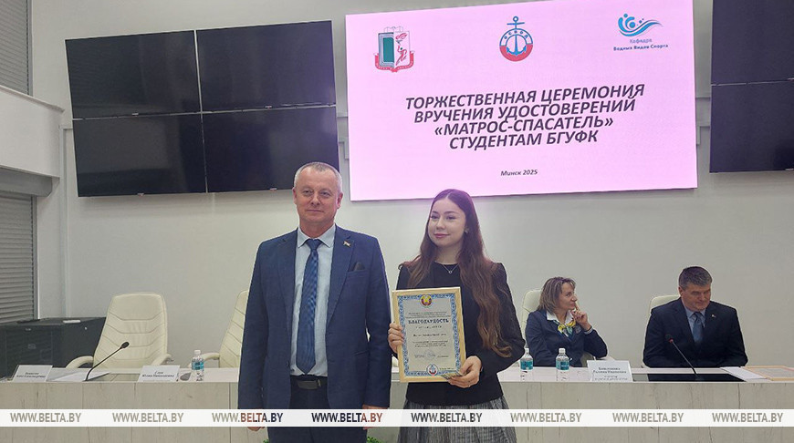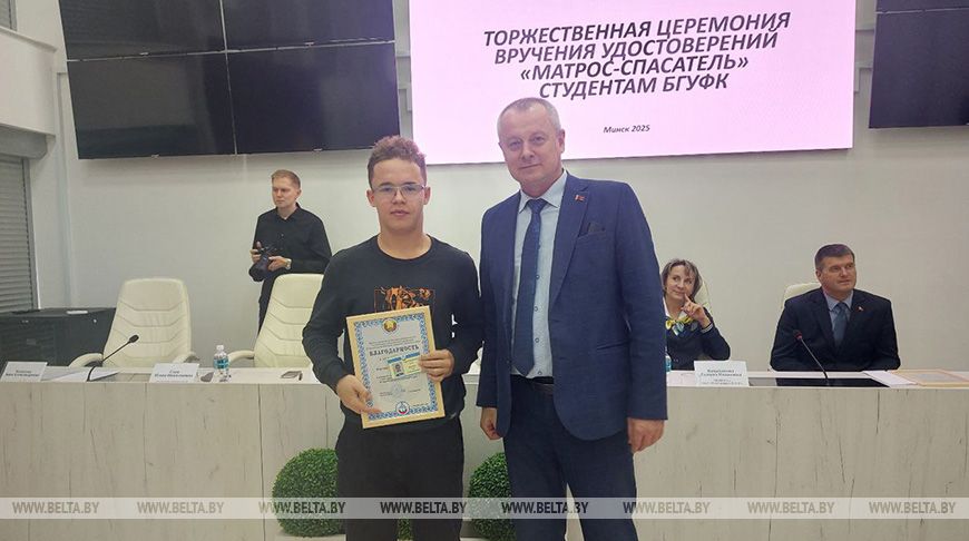 Сегодня Анастасия стала одной из 33 студентов, которым вручили удостоверение матроса-спасателя за сезонную работу в ОСВОД. Так Минская городская организация поблагодарила отличившихся за добросовестное выполнение обязанностей на спасательных постах. Девушка решила в следующем сезоне снова присоединиться к работе в ОСВОДе - ей очень понравилась взаимодействовать с людьми и помогать им.Председатель Минской городской организации ОСВОД Дмитрий Матюшко поблагодарил учащихся за то, что они вместе со специалистами отработали купальный сезон. "Одно только присутствие спасателей на пляже дисциплинирует отдыхающих, не говоря уже о том, что на смене подготовленные ребята - обученные пловцы, молодежь, полная сил, которая нам очень нужна", - сказал он.-0-