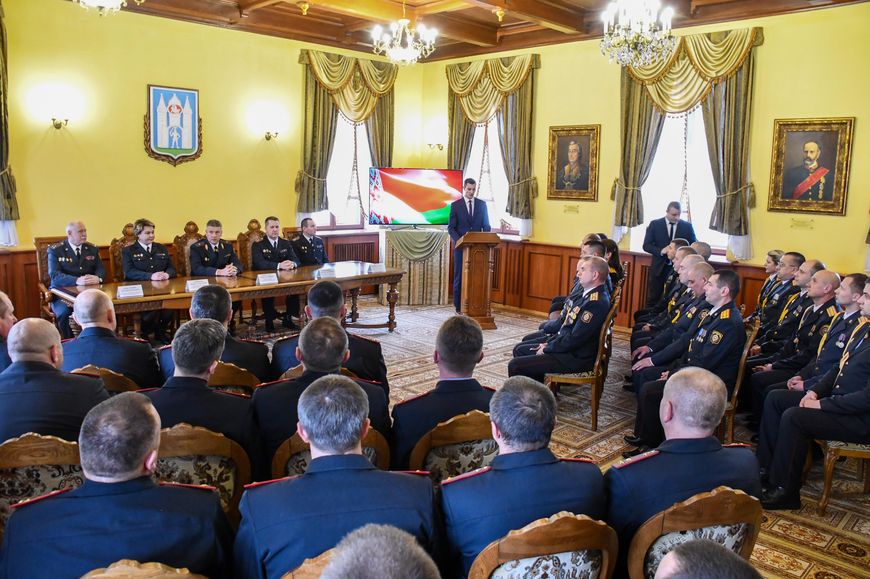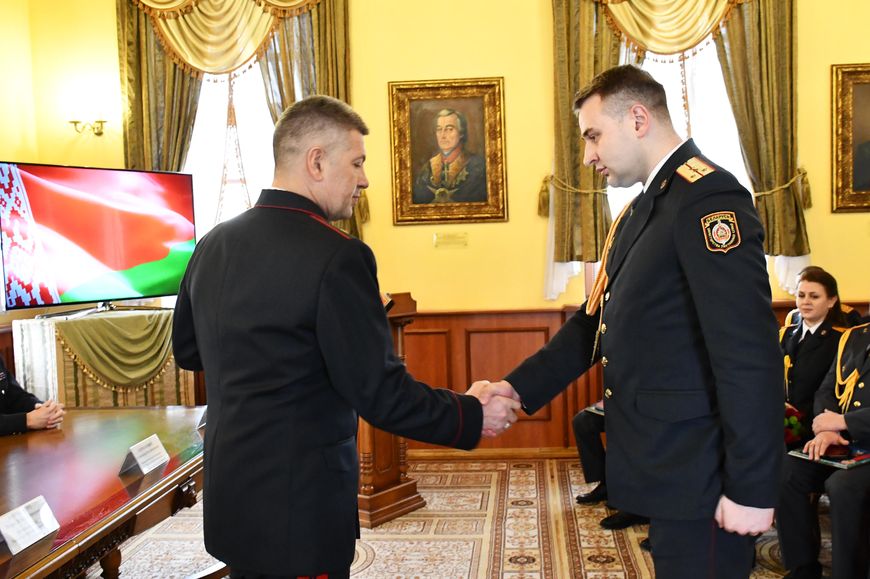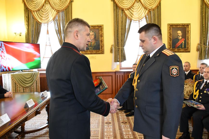 Как отметили во время офицерского собрания, успехи и высокие достижения невозможны без опыта предыдущих лет. Равняться на трудолюбие, отвагу и подвиги почетно во все времена. "Каждый из вас доказал свой профессионализм, верность долгу и присяге. По праву вы лучшие сотрудники органов внутренних дел нашего региона. Я уверен, что это особенно приятно и почетно для молодых милиционеров, которые только начали свой служебный путь, - отметил начальник УВД Могилевского облисполкома Игорь Щербаченя. - Традиции подводить итоги в таком формате уже много лет. Следование милицейским ритуалам, бережное отношение к прошлому не только сохраняет единство сотрудников органов внутренних дел, но и позволяет нам достигать значимых результатов в оперативно-служебной деятельности, справляться с поставленными задачами. В прошлом году милиция Могилевщины сработала достойно. В этом заслуга и тех, кто сейчас находится в зале, и тех, кто несет службу".
