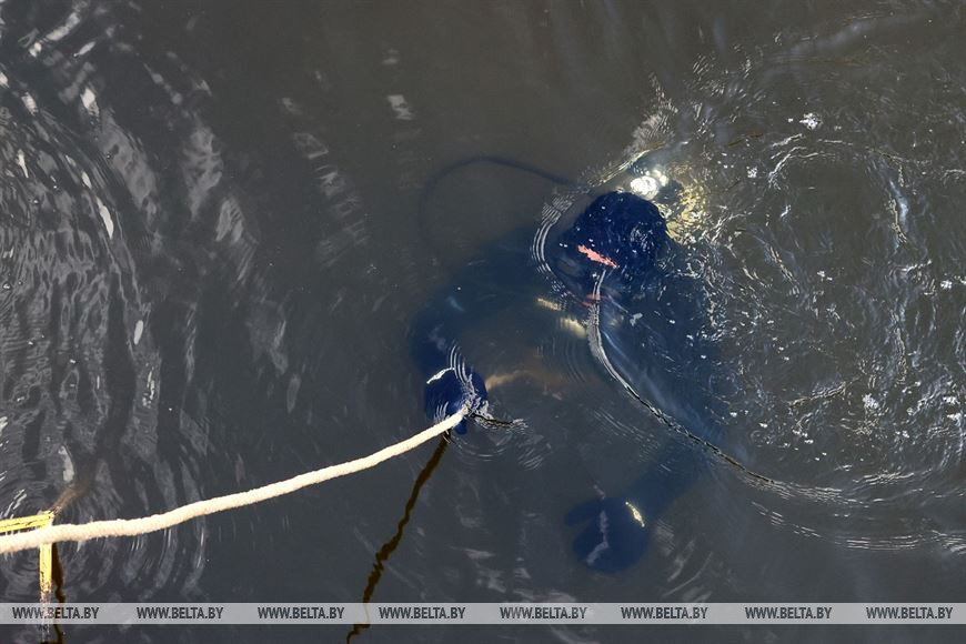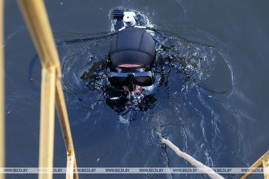 "На протяжении нескольких недель теоретическую и практическую подготовку здесь проходят 9 военнослужащих из Бреста, Витебска, Гродно, Минска и Слонима, - отметил Вадим Подольский. - Самым ответственным заданием для них стало выполнение на время нормативов в открытой воде: отпилить и поднять на поверхность кусочек металлической работы, произвести строповку бочки и трубы (имитации снаряда). После практического и теоретического экзаменов будет принято решение о выдаче военнослужащим личной книжки водолаза с присвоением специальности легководолаз".