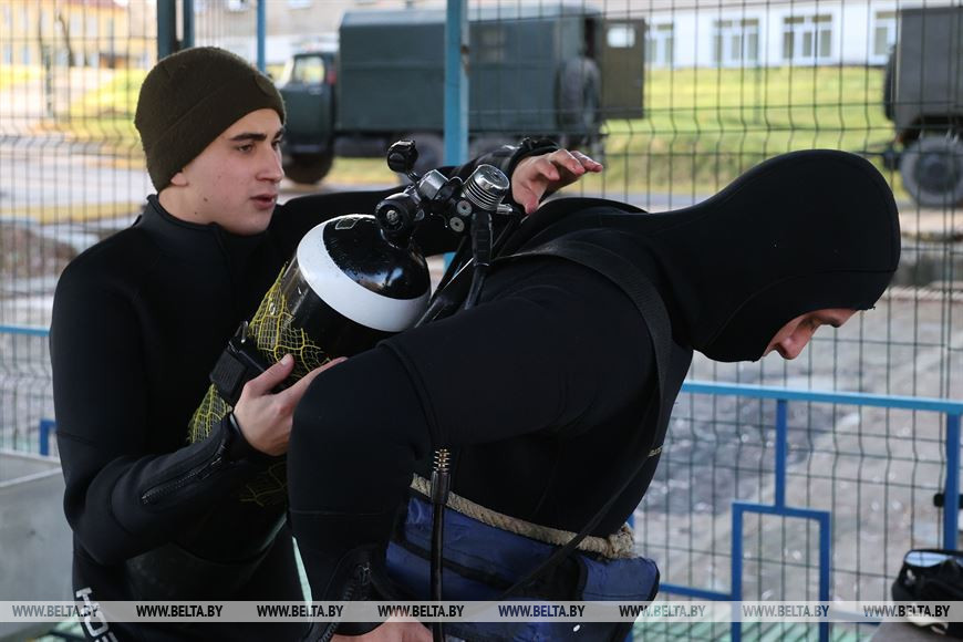 29 октября, Могилев /Корр. БЕЛТА/. Учебно-тренировочные сборы военных водолазов проходят в 188-й гвардейской инженерной бригаде Могилева. Об этом корреспонденту БЕЛТА рассказал командир учебного водолазного взвода гвардии лейтенант Вадим Подольский.