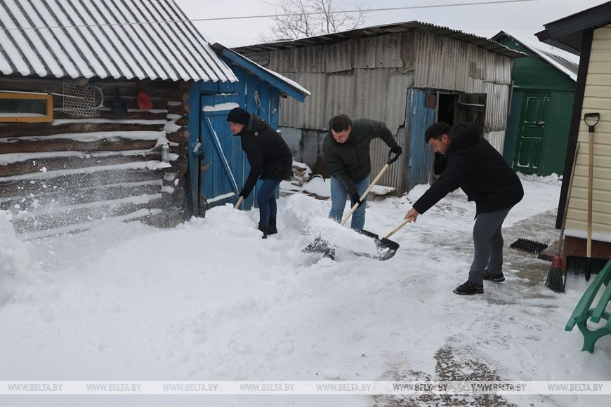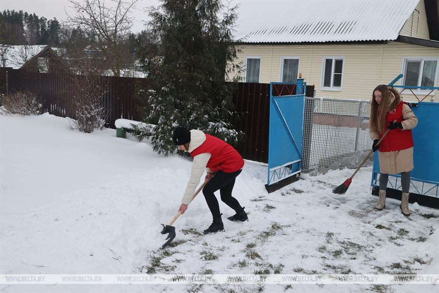 28 ноября, Могилевский район /Корр. БЕЛТА/. Буквально вчера Могилевскую область накрыл первый в этом году сильный снегопад. Активная молодежь региона сразу же вышла на помощь пожилым и одиноко проживающим людям, которые в силу возраста не могут сами очистить придомовую территорию от снега, передает корреспондент БЕЛТА.