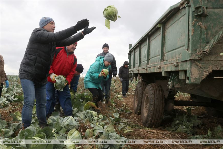 На поле сегодня трудятся порядка 100 человек: местные жители, представители руководства, депутатского корпуса, предприятий, организаций и учреждений района. Как отметил заместитель председателя Могилевского райисполкома Александр Алексо, такая практика - ежегодная. "Сбор урожая - это общенациональная забота. Потому что позже эти овощи будут на наших столах. Важно вовремя убрать и сохранить урожай. Кроме этого, приятно сделать полезное дело в свой выходной, - отметил он. - Мы всегда готовы прийти на помощь нашим хозяйствам в уборке урожая, откликаемся на просьбы сельчан. В этом году уже принимали участие в уборке лука. Каждый из нас прекрасно понимает важность и необходимость такой работы".