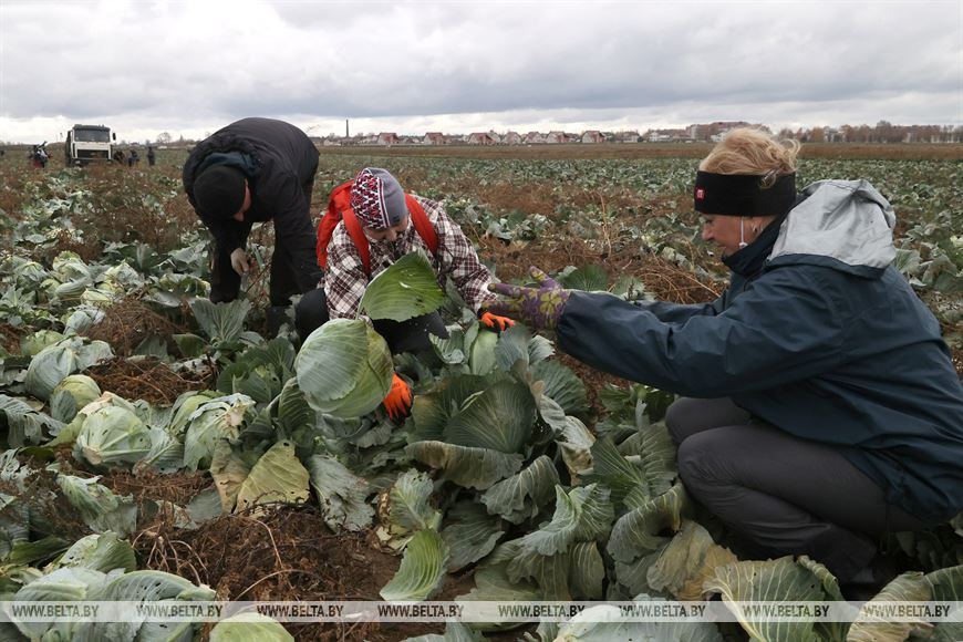 23 октября, Могилевский район /Корр. БЕЛТА/. Жители Могилевского района во время областного субботника помогают в уборке урожая капусты ОАО "Фирма Кадино", передает корреспондент БЕЛТА.