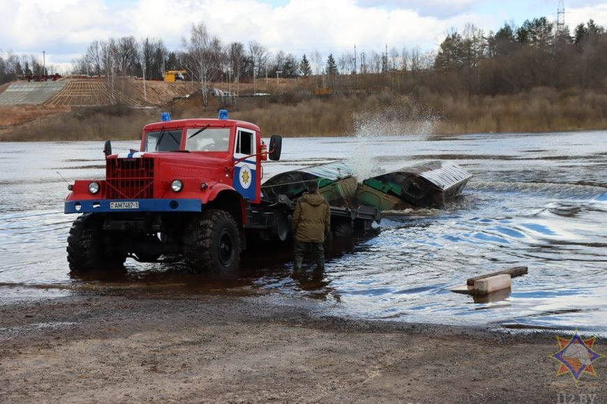 10 апреля, Минск /Корр. БЕЛТА/. В Новополоцке спасатели готовятся к возведению понтонного моста на реке Западная Двина, сообщили БЕЛТА в Витебском областном управлении МЧС.