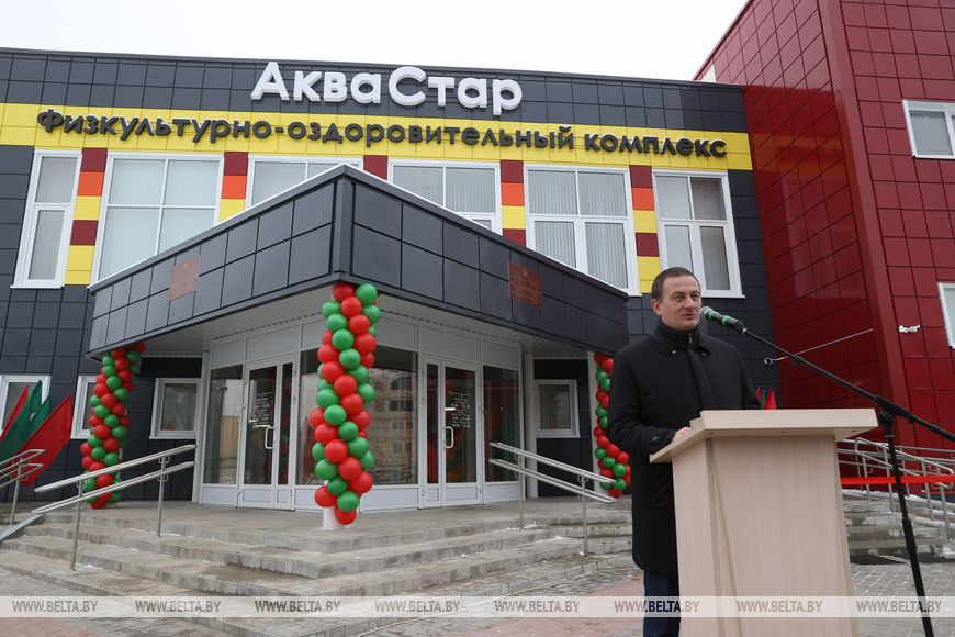 9 декабря, Старые Дороги /Корр. БЕЛТА/. Современный физкультурно-оздоровительный комплекс "АкваСтар" открыли сегодня в Старых Дорогах, передает корреспондент БЕЛТА.