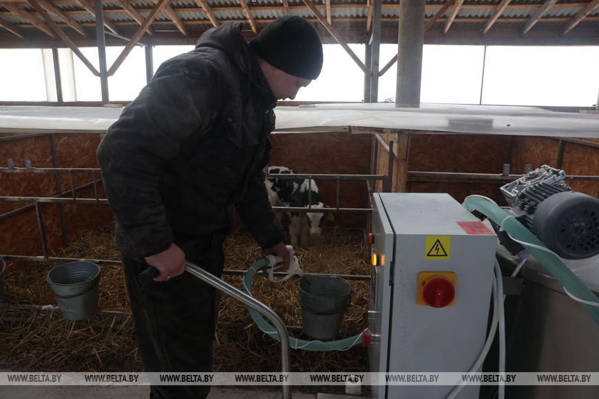 Помимо этого, усилили состав работников профилактория - вместо двух человек сейчас тут трудятся четыре. Из-за низких температур выпойку телят молоком проводят три раза в сутки, сделали дополнительную выпойку теплой водой - каждые полтора часа между молоком. Такие меры помогают держать температурный баланс тела телят."В нашем комплексе 600 дойных коров. Сегодня он полностью загружен. Комплекс был построен по указу Президента. Большое дело сделали и для людей - с введением этого комплекса добавилось еще 20 рабочих мест. Созданы комфортные условия для работы и ведения нашего хозяйства, заработная плата у них выше стала. Это благодаря надою молока. А надой начинается именно с этого помещения, именно с профилактория", - отметил руководитель.