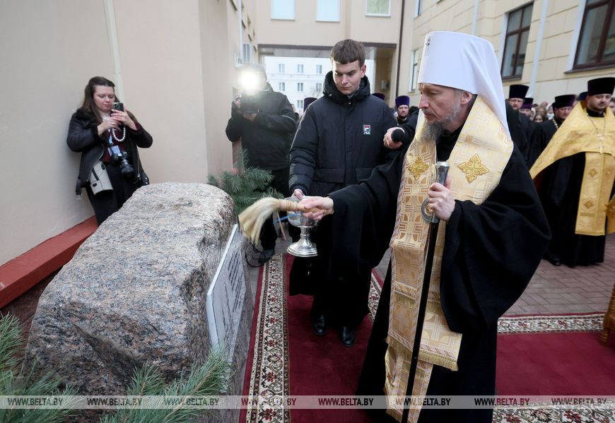8 декабря, Витебск /Елена Аниськович - БЕЛТА/. Около здания библиотеки Витебского государственного медицинского университета (ВГМУ) в рамках республиканских Боткинских чтений состоялось освящение памятного знака, установленного на месте храма во имя Усекновения главы святого Иоанна Крестителя (XVII век), передает корреспондент БЕЛТА.