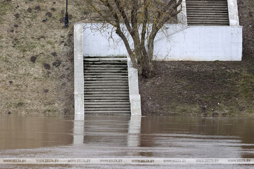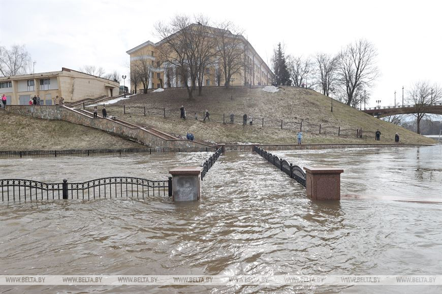 В результате подъема уровня воды в реке Витьба подтоплена набережная Западной Двины в Витебске. Под водой оказался участок протяженностью 100 м, максимальный уровень воды - 50 см.