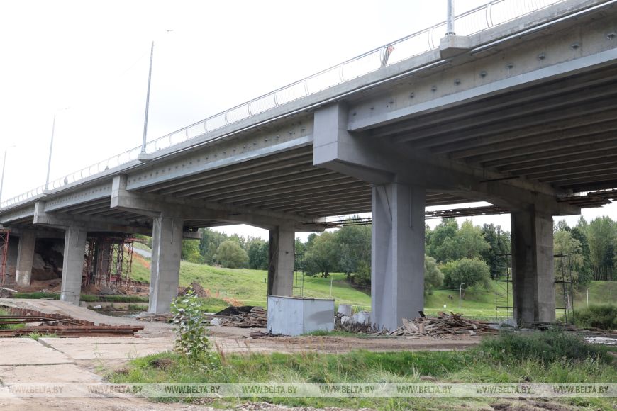 27 августа, Витебск /Корр. БЕЛТА/.Капитальный ремонт моста через реку Витьба начали в октябре 2024 года. Новые опоры, асфальтовое покрытие, тротуар, осветительные мачты - здесь уже выполнены все работы по правой стороне, и строители приступили к обновлению левой стороны моста. Работы ведутся без выходных. После ввода в эксплуатацию мост станет намного удобнее не только для водителей личного и общественного транспорта, но и для пешеходов.-0-Фото Александра Хитрова