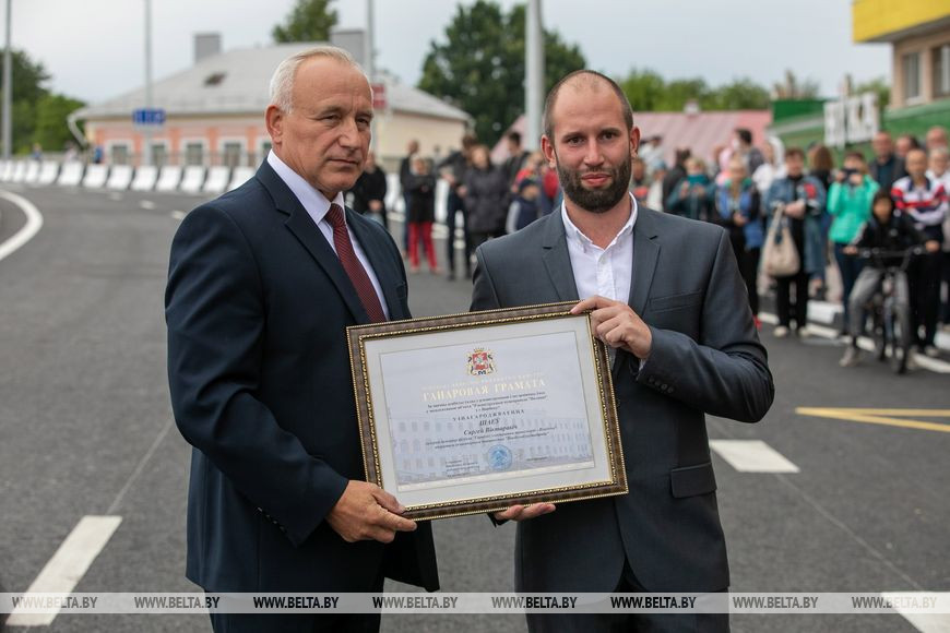 Перед пуском движения прошло награждение причастных к реконструкции путепровода. Председатель Витебского облисполкома Николай Шерстнев поблагодарил службы и организации за строительство и благоустройство развязки. "Сегодня знаменательный день, открываем такой важный объект. В то, что так быстро реконструировали мост, не могут поверить не только скептики, но и профессионалы в этой сфере", - отметил губернатор.