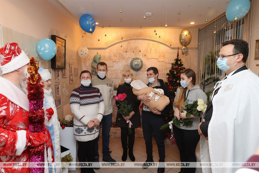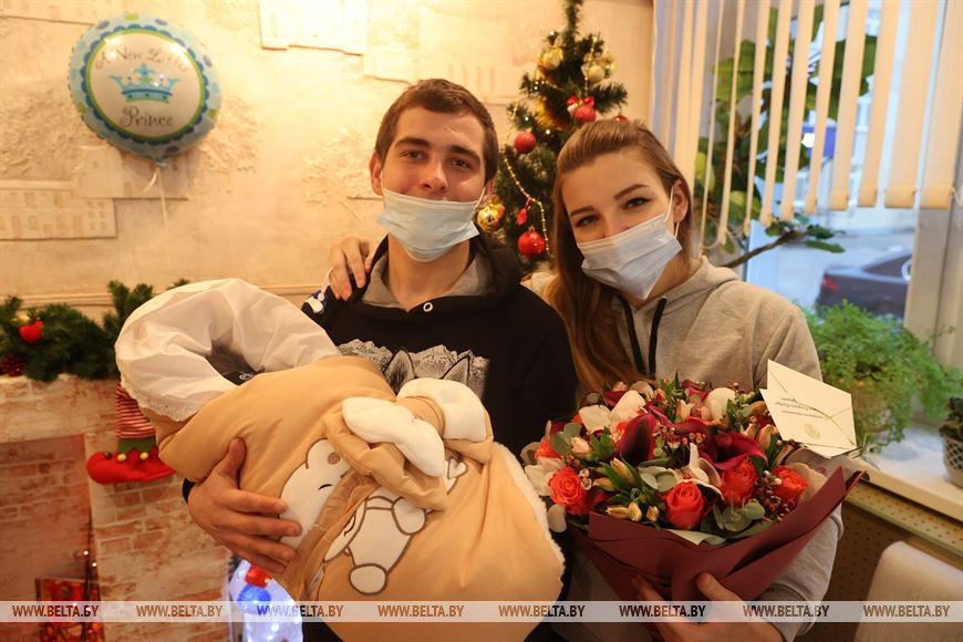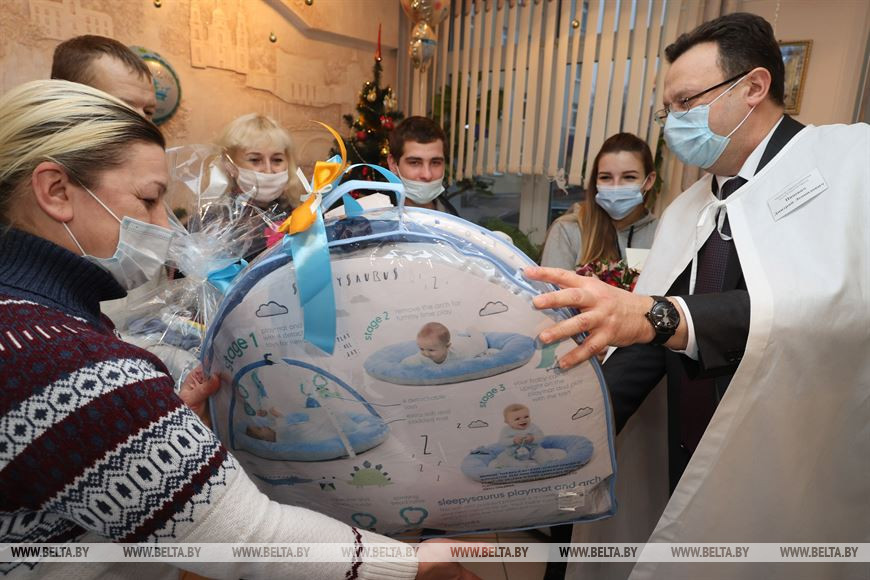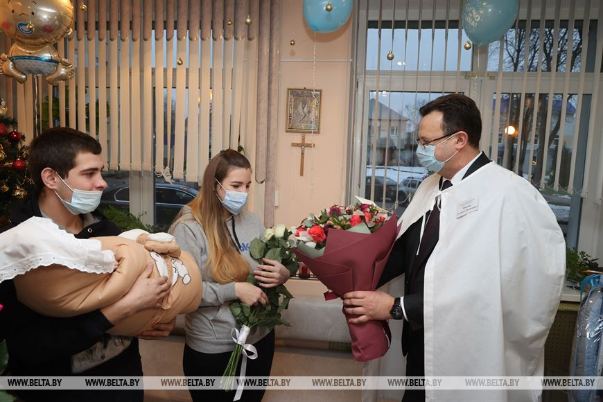 По словам главы ведомства, давняя традиция - маму, у которой родился первый малыш в наступившем году, поздравляет министр здравоохранения. "Всего 1 января в Беларуси родился 101 ребенок - 46 девочек и 55 мальчиков. Самым первым появился на свет Роман в Витебске", - отметил Дмитрий Пиневич.