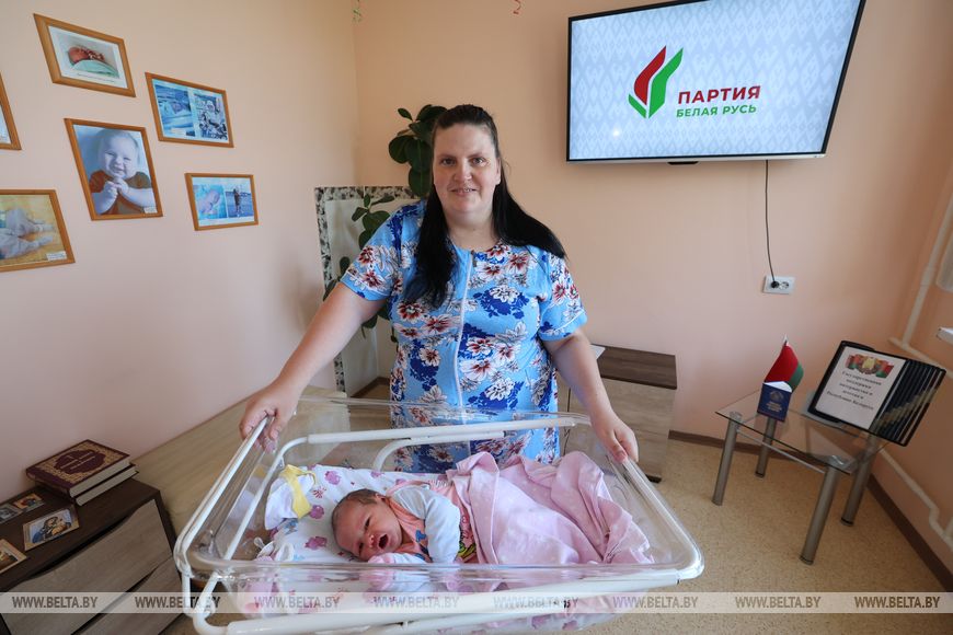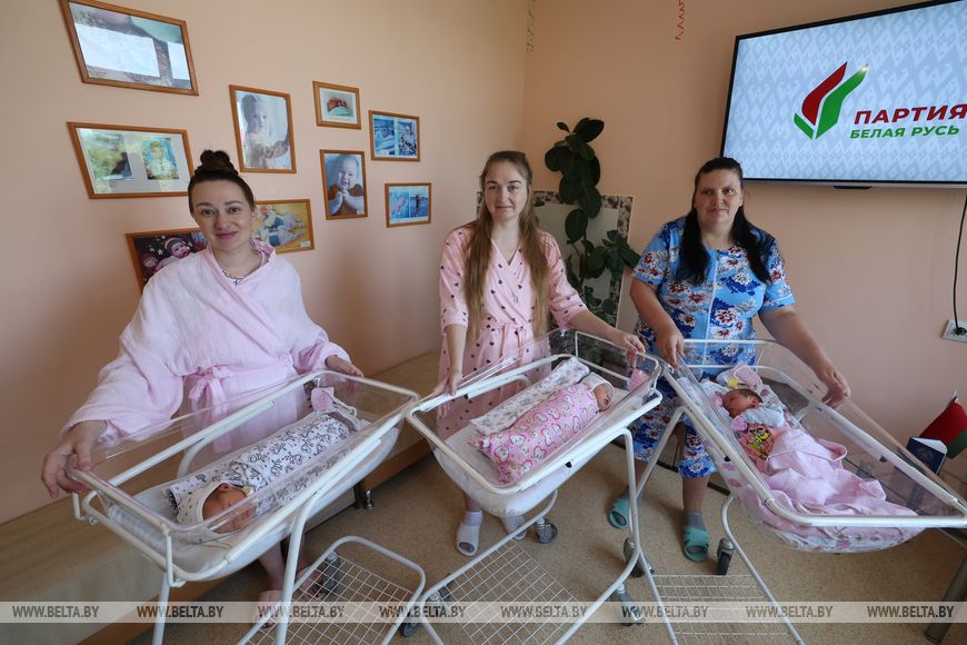 7 июля, Витебск /Алеся Пушнякова - БЕЛТА/. Женщин, которые родили детей в первые минуты 3 июля, в День Независимости Беларуси, чествовали в Витебском областном роддоме, передает корреспондент БЕЛТА.