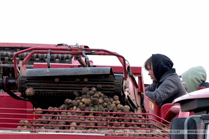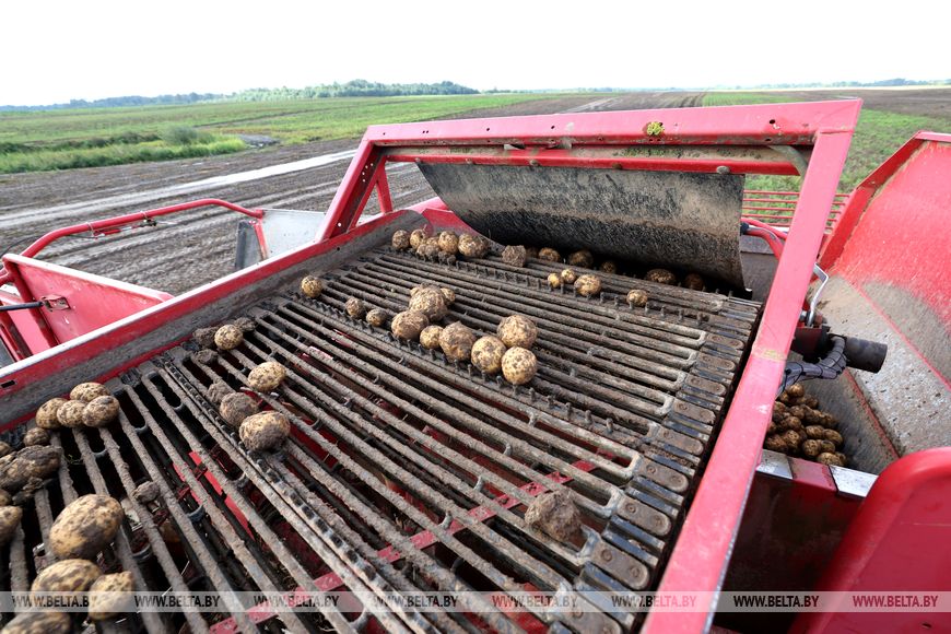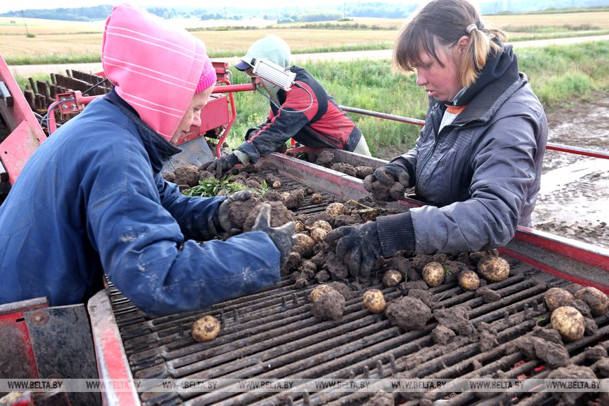 25 августа, Витебск /Корр. БЕЛТА/. На полях Витебского района идет уборка картофеля. В крестьянском (фермерском) хозяйстве "Вармас" картофель занимает 255 га. Уборка идет в трудных климатических условиях, многие поля залиты водой.-0-
