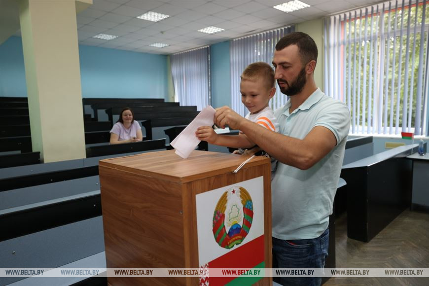 На участке №17, который разместился в главном корпусе Гродненского государственного аграрного университета, первые голосующие пришли буквально через минуту после открытия. Председатель комиссии Вадим Смольский отмечает: в числе первых, кто пришел, немало и молодежи. Например, Александр и Анастасия Лазовские, которые отправились на участок вместе с сыном Никитой.