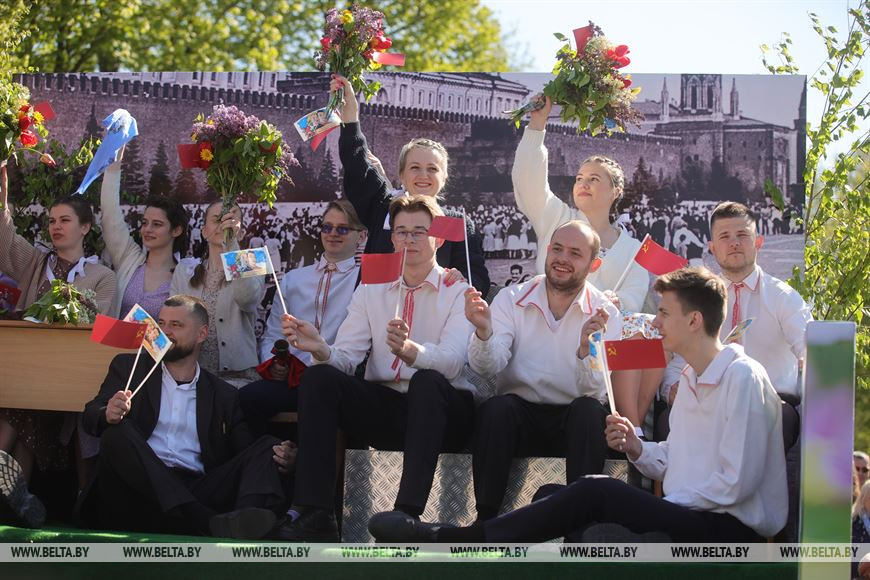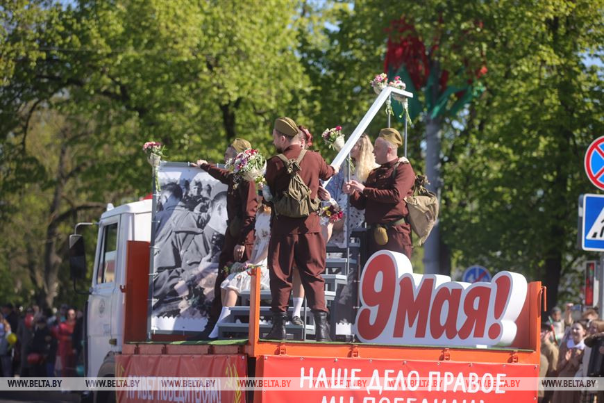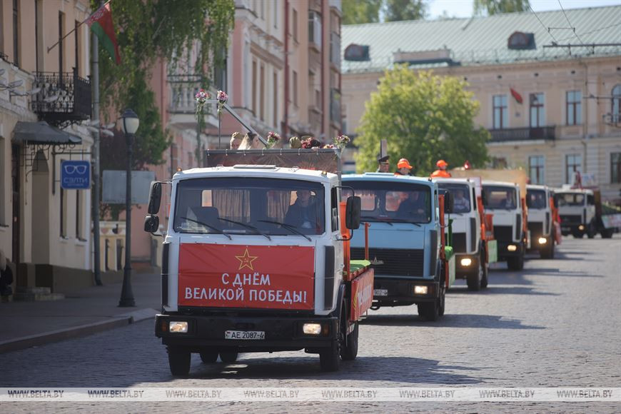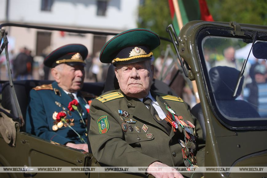 Масштабные мероприятия, посвященные Дню Победы, начались с возложения цветов к памятнику советским воинам и партизанам, погибшим в годы Великой Отечественной войны. Церемонии предшествовал мирный автопарад стилизованных автомобилей. Возглавила колонну легендарная полуторка, в которой новое молодое поколение патриотов - кадеты Гродненского областного кадетского училища. Мимо сотен гродненцев, собравшихся на праздновании Дня Победы, проехала техника, экспозиции которой символично и трогательно отразили важные этапы 1940-х.