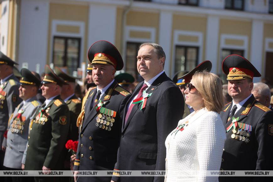 После парада состоялось шествие поколений, объединившее сотни жителей Гродно, а также митинг, посвященный 78-й годовщине Победы. Торжественные мероприятия продолжаются в разных точках города. Завершатся гулянья вечерним концертом на главной сцене на площади Советской. Его участники присоединятся к акции "Споем "День Победы" вместе". Традиционно раскрасит небо над Гродно и праздничный салют.-0-