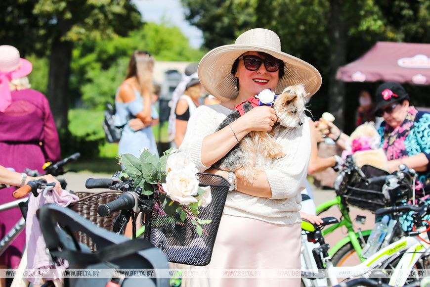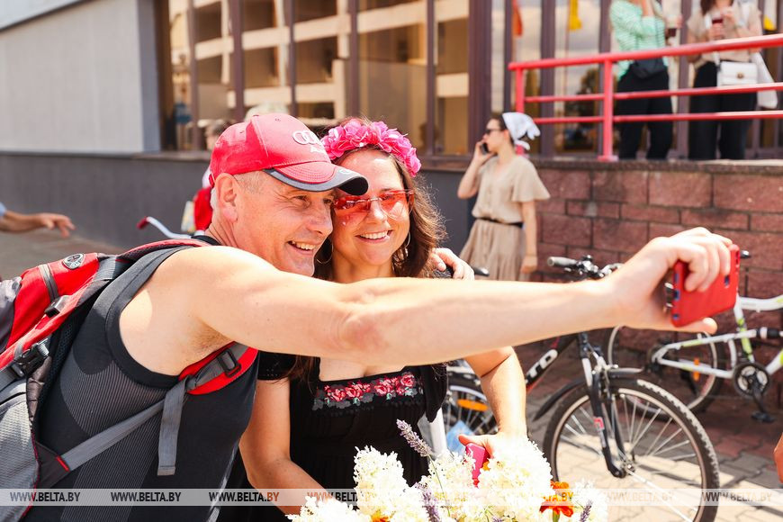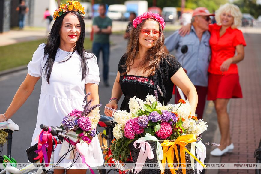 Брестчанка Елена присоединилась к велопараду с внучкой Дашей. "Мы решили поучаствовать, чтобы себя повеселить и других порадовать. Подобрали образ, украсили велосипеды. Идея здоровская. В прошлые годы видела, что девочки ездили. Не думала, что и сама могу так же, а оказалось, можно просто приехать и поучаствовать", - поделилась Елена. Кстати, багажник ее велосипеда украсила символическая корзинка с "медалями" для белорусских спортсменов на II Играх стран СНГ.
