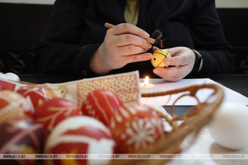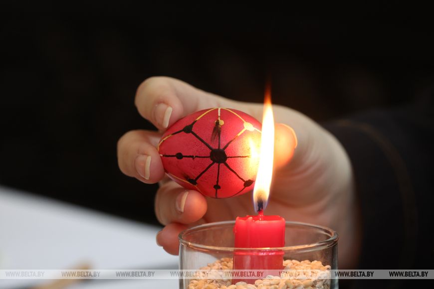Сама традиция росписи яиц только сейчас получила широкое распространение, поэтому в музей приходят только те, кто знает и интересуется этим ремеслом. "Они к нам приходят либо несколько лет подряд, потом перерыв делают и возвращаются. Чтобы не покупать инструмент, красители, все это дома не разводить, приходят к нам и у нас это все проводят", - рассказала Татьяна Андриевич. Мастер-классы очень камерные, и мастерица не берет больше восьми человек в группу. "Надо, чтобы никто тебе не мешал, не толкал, чтобы все ровно получилось, потому что инструмент очень специфический, и там любое движение может нарушить ровные линии, может воск капнуть. И сам процесс долгий, поэтому еще раз собраться силами будет сложно", - рассказала она. Такие мероприятия проходят по записи - в Instagram или на сайте музей. Татьяна Андриевич провела нам мастер-класс в экспресс-формате, поэтому буквально через полчаса перед нами появилось пестрое расписное пасхальное яйцо с символом солнышка. Это та самая сакральная писанка, которую можно только подарить. В заключение мастер добавила: обереги ни в коем случае покупать или продавать нельзя. А вот что можно, так это подарить его самым близким с самыми лучшими пожеланиями.Фото Виталия ПИВОВАРЧИКА, БЕЛТА.-0-
